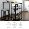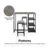 – Assembled Table Dimensions: 42″ W x 24″ D x 36″ H. Assembled Stool Dimensions: 12″ W x 12″ D x 24″ H. Table Weight Limit: 50lbs. Shelf Weight Limit: 20lbs.