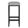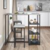 – Set features one rectangular faux concrete table top with a black metal finish base and two square stools. Stools have a straight leg stool design with a built-in footrest and a sturdy construction.
