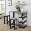 The Mainstays 3-Piece Metal Pub Set with Faux Concrete Top is a great way to bring style to your home, adding a modern architectural look. Designed with small spaces in mind, this strong but lightweight set includes a trendy, faux concrete table and two plush, suede-like microfiber stools that stand on a durable black metal base. This set combines an edgy feel with clean, classic lines that produce a beautiful two-tone silhouette that is easily adaptable with any home or office decor. Three convenient storage shelves provide ample space and the stools fit neatly under the table when not in use. Perfect for apartments, lofts and studios, this pub set also works in homes of any style who want to add a little entertainment nook for hosting friends and family. For a cool, modern and trendy dining or entertaining space, add the minimalist style of the Mainstays 3-Piece Metal Pub Set with Faux Concrete Top.