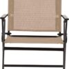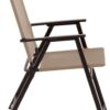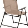 – Chairs and umbrella feature quick-drying sling fabric; black frames constructed of powder-coated, rust-and-corrosion-resistant steel