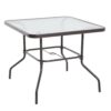 - Materials: Steel, tempered glass, PVC sling, polyester