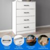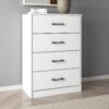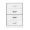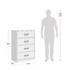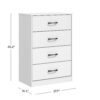 This four-drawer dresser is as simple to put together as it is sleek. Featuring a design that allows for quick and easy assembly by anyone, this piece gives you an elevated look without the hard work. Grooved wooden panels are designed to stay in place so you can effortlessly snap them together and then move on with your day. With clean lines and a timeless silhouette, this adult dresser boasts generously sized drawer pulls, and a lamination process ensures a consistent white finish throughout. Tall and lean, this dresser features four spacious drawers that slide smoothly on a metal glide system. Add understated elegance to your bedroom with this casual transitional piece. Assembly required.
