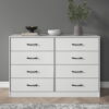 This 8-drawer dresser is as simple to put together as it is sleek. Featuring a design that allows for quick and easy assembly by anyone, this piece gives you an elevated look without the hard work. Grooved wooden panels are designed to stay in place so you can effortlessly snap them together and then move on with your day. With clean lines and a timeless silhouette, this adult dresser boasts generously sized drawer pulls, and a lamination process ensures a neutral black finish throughout. Tall and lean, this dresser features eight spacious drawers that slide smoothly on a metal glide system. Add understated elegance to your bedroom with this casual transitional piece. Assembly required.