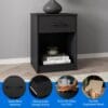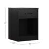 This one-drawer nightstand is as simple to put together as it is sleek. Featuring a design that allows for quick and easy assembly by anyone, this piece gives you an elevated look without the hard work. Grooved wooden panels are designed to stay in place so you can effortlessly snap them together and then move on with your day. With clean lines and a timeless silhouette, this adult nightstand boasts a spacious drawer that slides smoothly on a metal glide system, and a lamination process ensures a consistent black finish throughout. Add understated elegance to your bedroom with this casual transitional piece. Assembly required.