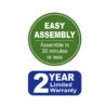 – Arrives in 1 box, shipping dimensions: 45.1 L x 28.7 W x 22.4 H; 116.6 lbs.