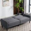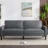 Diseñado con una silueta moderna, este futón cuenta con detalles de diseño de tuberías simples y tapicería de lino de calidad. Además, este futón es convertible gracias a su diseño dividido que permite ajustar el respaldo de forma independiente entre tres posiciones: sentado, descansando y durmiendo. Esto significa que puedes estar sentado para leer tu libro favorito por un lado mientras tu mejor amigo está acostado en el otro lado para una siesta por la tarde. El futón está construido con un marco de madera resistente y se asienta sobre patas de madera maciza para proporcionar soporte y durabilidad. Dimensiones del futón: 76 “W x 32” Dx 33 “H. Límite de peso: 600 lb