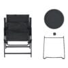 – Features fold-flat design for easy transport and storage and includes two armchairs plus one small, round table