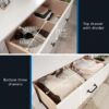 - Four spacious drawers feature metal runners and safety stops