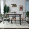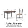 This elegant piece has a sturdy steel table frame and a wooden top with four metal chairs that have upholstered seats. The dining set is available in multiple colors, so you can choose the one that works best with your room decor. The upholstered seat has some cushioning, so it is comfortable to sit in whether you are just having a quick meal or relaxing with guests after a nice dinner. This compact dining set has clean lines and a modern style that works well in many different settings. Use it in your dining room to add a contemporary look or use it in the kitchen for a more casual feel. The compact size means it will fit in smaller areas such as a kitchen nook. The sturdy construction of the dining set is designed to last whether you use it every day or just on special occasions. The hardware is individually sorted to help make the assembly of the set a shorter process.