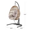 Create an outdoor retreat with the Mainstays Wicker Outdoor Patio Hanging Egg Chair with Beige Olefin Cushion and Black Metal Stand,This stylishly woven egg chair comes with the stand and heavy-duty chain for a swinging seat, allowing you to gently sway as you sit. The cushion is made with a fade-resistant olefin fabric and filled with a plush polyester fiberfill while the basket chair and frame are powder-coated to make it a rust-resistant outdoor chair. The Mainstays Outdoor Patio Hanging Egg Chair with Cushion and Stand can be taken down and then put back up in a matter of minutes, so it can be easily stored in the off-season and brought back out for the warmer months.Chair provides a relaxing seat for one person Maximum Weight 250 lbs.
