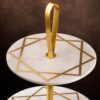 Embellished with gold inlay, your cakes and sandwiches will steal the show on this 3 tier cake stand, at any wedding, birthday party, baby shower, anniversary, and more! The intricate gold inlay and natural white marble blend perfectly with both modern and contemporary aesthetics. Hand craftsmanship & natural variations in the color, weight and veining of natural marble makes each of our cake stands a singular work of art.