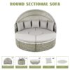 MAYEERTY Luxury Outdoor Round Sectional Sofa Set a Rattan Daybed with Retractable Canopy, Adjustable Table and Removable Cushions
