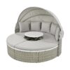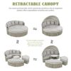 – Convertible Daybed with Retractable Canopy Enjoy maximum flexibility with a round configuration that transitions from individual seating into a cozy daybed. The retractable canopy, secured by durable straps, offers optional sunshade perfect for lounging comfortably in any weather condition.