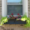 With its inset panels and classic design, the Fairfield 48″ x 11″ x 10.8″ Rectangle Black Self-Watering Polyethylene Window box Planter is a timeless choice that will never go out of style. We use 100% high-grade Polyethylene resin in the manufacturing process – making our products durable, lightweight and highly shock resistant. Double-wall design makes these Fairfield Window Boxes sturdy, and provides the roots and potting mix with adequate insulation from surrounding weather conditions. These Polyethylene window boxes also have a built-in water reservoir.