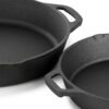 MegaChef 13 Piece Cast Iron Skillet Set with Tempered Glass Lids, Silicone Holders and Scrapers is ideal for any cooking scenario. Ideal for indoor and outdoor use, this cast iron skillet set comes with 4 different sized Skillets and 4 Tempered Glass lids. Cast iron construction features quick and even heat distribution for improved cooking experiences. Use them indoor and outdoor on the oven, stove, grill and over a campfire for grilling, frying, sautéing, roasting, braising, and broiling meats, vegetables, and so much more.