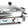 The MegaChef 3-in-1 Electric Chafing Buffet Server & Warming Tray is a versatile solution for hosting, featuring three 2.63 qt. trays and an 8.6 qt. baking pan, perfect for keeping multiple dishes warm. Made from durable stainless steel, this buffet server offers a sleek, professional look while ensuring efficient heating for extended periods. Its 3-in-1 design allows you to use it as a buffet server, warming tray, or chafing dish, making it ideal for parties, family gatherings, or catering events.