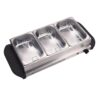 • High-quality stain- and rust-resistant stainless steel food containers and a base