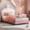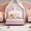 - The headboard of this platform bed is crown shape. It is so cute that your girl will love it.