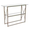 Merrick Lane Harlowe Console Table Modern Clear Glass Sofa Table with Gold Crisscross Frame and 2 Tempered Glass Shelves