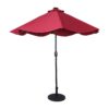 Treat your guests to the best the outdoors has to offer with this 9 FT round solar LED patio umbrella. Boasting a weather and water-resistant polyester canopy with UV 50+ protection and 32 LED lights with up to 6 hours of illumination time, this solar powered umbrella helps you make the most of every evening. A sturdy 1.5 diameter steel tube pole with a crank handle allows for easy deployment and the push-button tilt function provides shade wherever you need it. Assembly is quick and easy and maintenance is just as easy, wiping clean with a water based cleaner. Pair with our umbrella base or patio table for the complete look.