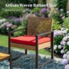 MF Studio 4-Piece All-Weather Rattan Patio Furniture Set, Outdoor Conversation Set with Wood Table, Brown and Red