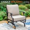 – Rocking Chair Design Due to the arc backrest and armrest design, our sofa can support your body in a comfortable pose. Featuring a smooth rocking function, the 2 single patio sofas will add extra pleasure and convenience to your conversation.