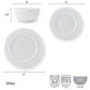 - 12-piece set includes 4 dinner plates, 4 salad plates, and 4 all-purpose bowls