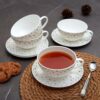 – 7.87 x 7.87 x 4.82 Inch Cups: 2.5 x 4.5 Saucers each have a 6-inch diameter.