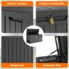 – Stable & Durable: Our deck box has extra reinforced steel beams on the inside to make it stronger and more durable. This special design ensures that the box stays solid in the face of challenges and stresses, so you can store heavy items without worrying about deformation, bending or damage.