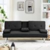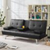 Modern Faux Leather Futon Sofa Bed with Cup Holders, Convertible Floding Sofa Couch, Black