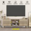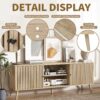 – The TV cabinet features a mid-century design with elegant fluted panels and sturdy steel legs, giving it a classic yet modern appeal. It features ample lower storage space with cable management holes that can be easily concealed using slide-close and push-away doors, making it ideal for storing media players, electronic accessories, books, and more.