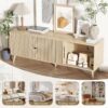 – Durable and Stable: Our modern entertainment center table demonstrates unparalleled durability and superior load-bearing capacity. Designed with 5 solid wood support legs, this media console table provides excellent stability and prevents any shaking or deformation even after prolonged use.