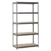 – Boltless steel storage rack with 5 adjustable particle board shelves that each hold 800 lbs. of evenly distributed weight