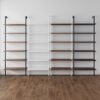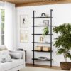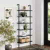 – This 6-tier tall, modern wall mount bookcase or shelving wall unit for shelving up any space with its industrial and modern style of matte black metal and painted wood.