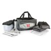 – Set includes: grill, spatula, tongs, fork, cooler & tote