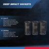 – SPECIAL DEEP DESIGN: Each socket has a unique design that grips the flat sides of fasteners rather than the corners to prevent stripping and rounding off of bolts. With a high torque impact gun, each standard socket will torque the most stubborn fasteners.