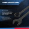 – STEEL WRENCH: This large wrench set is made of extremely strong, drop-forged and heat-treated steel. The black oxide finish promotes longevity and durability in your tool collection whether at home or in the garage.
