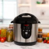 The NESCO® NPC-9 9.5 Qt. Smart Canner and Cooker creates an ideal balance between safety, performance, and versatility and will soon become one of your new favorite kitchen appliances. Designed to eliminate the common mistakes that cause harm or spoil food during the canning process, the Smart Canner gives users uncompromised safety and peace of mind. Multiple built-in safety features control and regulate the pressure continuously and allow you to can and cook without worry. The multifunctional digital display and preset programs give you the right tools to ensure consistent results when canning fruits, jams, pickles, salsas, and more. The safety lock lid with automatic float valve ensures that the lid fits correctly and identifies when pressure is present. Water bath and pressure functions take the guesswork out of the equation and simplify the ability to can your harvest. The removable 9.5 qt. nonstick cooking chamber is dishwasher safe and can hold and process 4 qt., 5 pt. or sixteen 4 oz. jelly jars at a time. The durable stainless steel body is lightweight and has side handles for safe handling. This canner also prepares your favorite slow-cooked recipes faster and makes healthy, delicious meals with a touch of a button. It’s easy to clean and ideal for quick and efficient pressure/slow cooking, browning, steaming vegetables and cooking rice. Additional accessories include a canning rack and steam rack for canning and cooking options and a removable condensation catcher for easier clean up.