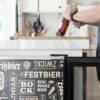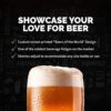 This custom beverage fridge features on-trend design that highlights your love of craft brews. The sharp black exterior has an all-over print filled with graphics reminiscent of hand-printed beer signs and vintage bar art. Designed to stand out, this beverage fridge is the perfect accessory for any beer lover.