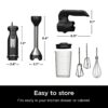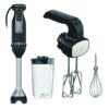 – 750-peak-watt PowerBase, 9-in. immersion blending arm with stainless steel blade and built-in pan guard, hand mixer attachment with EasyGlide beaters & whisk, 3-cup blending vessel with storage lid & 20-recipe inspiration guide