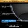 – Uniquely designed to distribute metal thickness throughout the pan to prevent hot-spots so food cooks quickly and evenly. Heavy-gauge 4.5 mm aluminum base for improved heat retention.