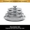 – During storage, the unique anti-scratch nesting design protects your pots and pans by suspending the cooking surfaces so they never touch. Handles and nonstick coating are both oven safe up to 500°F. Lid is oven safe up to 400°F.