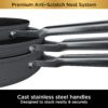 – Premium stainless steel handles allow for oven use up to 500°F and are ergonomically designed for comfort. Double-riveted for strength and maneuverability