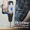 – 3/8″ Keyless Chuck & 23+1 Clutch 3/8 Keyless Chuck serves you with an automatic spindle lock that enables your one-hand quick changing with great accessory compatibility. The 23+1 torque setting generate higher precision for different materials (wood/plastic/concrete/metal). The Forward/Reverse switch allows you to screw or replace/remove bits as needed
