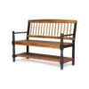 Noble House Imperial Outdoor Rustic Acacia Wood Bench with Shelf in Teak/Black