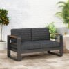 Noble House Negley Cushion Aluminum Outdoor Loveseat – Dark Gray/Black