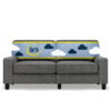 Rolled accent pillows: This sofa includes two matching rolled accent pillows, giving this piece both extra comfort and a boost of style. These give an illusion of scrolled arms if placed properly or they can be removed for an edgier look.