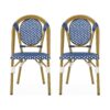 Noble House Remi Aluminum and Faux Rattan Bistro Chairs in Blue/White (Set of 2)