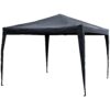 Stylish and practical steel canopy gazebo. Large enough to fit your patio set or several friends underneath. This gazebo comes with a gray carrying case for easy transport and storage. Perfect for tailgating at the game or parties in your yard. Features: Tube 20/20 – 25/25 0.6mm . Black steel frame. Canopy and cover made of 160 gram polyester . Solid colored canopy with straight flap and trim . Corner pole cover . 10 x 20 mm ribs. Center height is approximately 8 feet high. Some quick and easy assembly required. Provides protection from the elements. Dimensions: 10′ wide x 10′ long . Material(s): 160 gram polyester canopy/steel