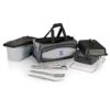 - Set includes: grill, cooler, spatula, tongs, fork & tote